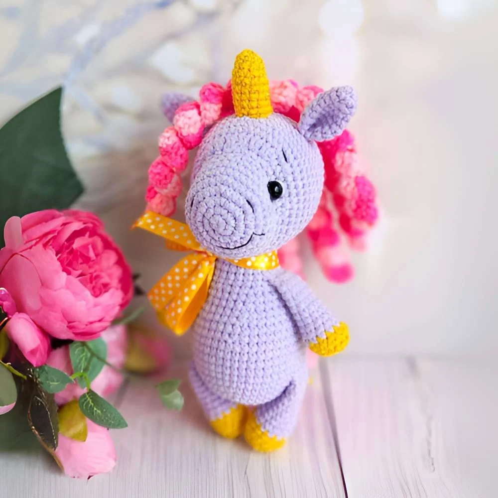 - This toy was crocheted using a 2.0mm hook. The height of the finished toy, including the horns, is 13 cm (approximately 5.1 inches)